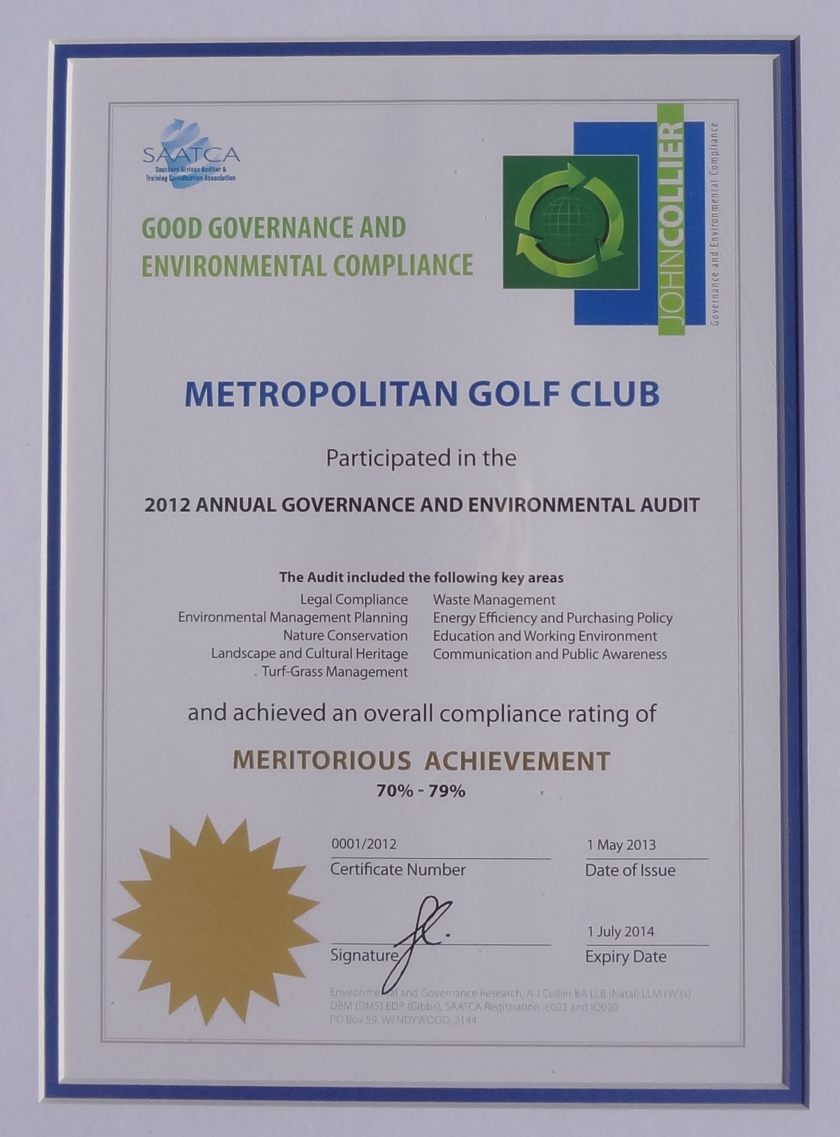 Metropolitan Golf Club in Cape Town is this year’s leading club in the sixth annual John Collier Survey, for reporting on environmental compliance and good governance.