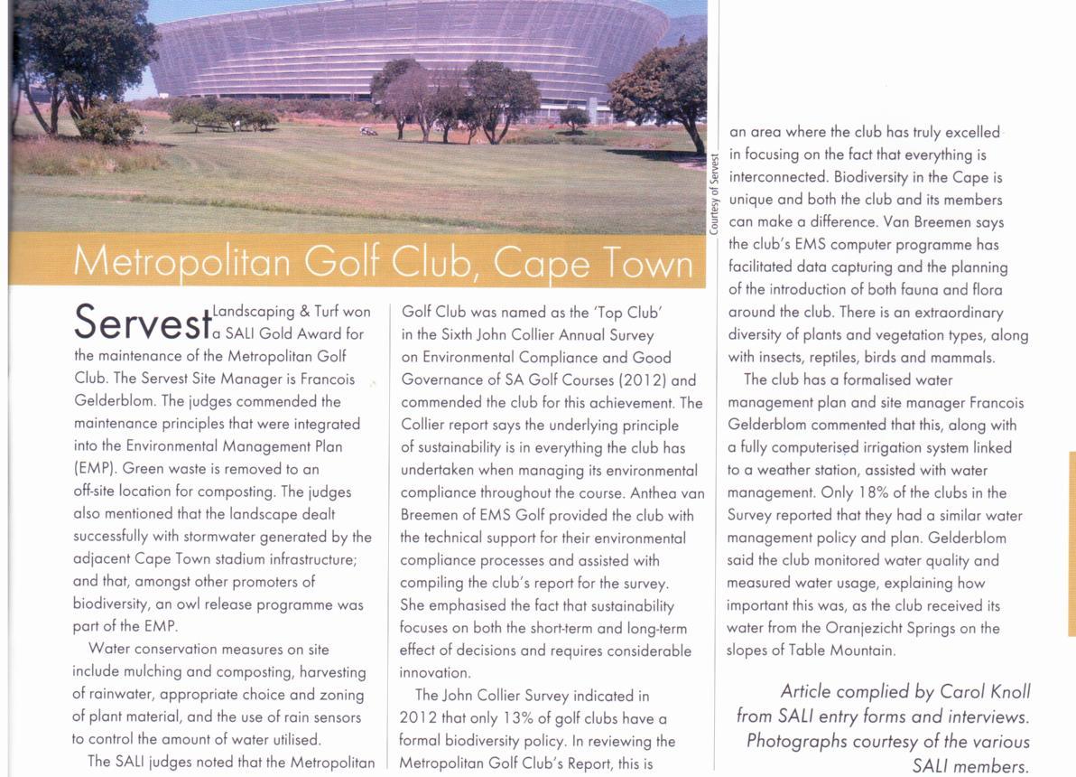 South African Landscape Institute pays tribute to the Metropolitan Golf Course.